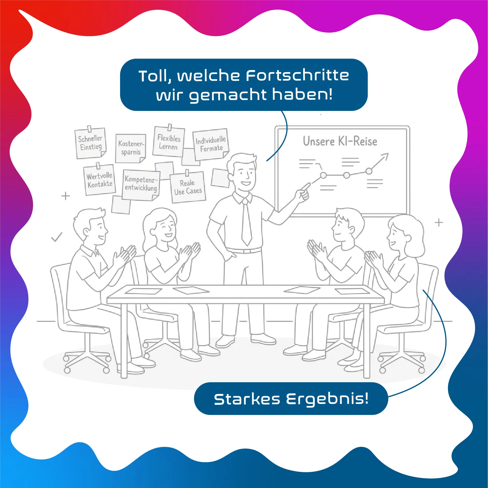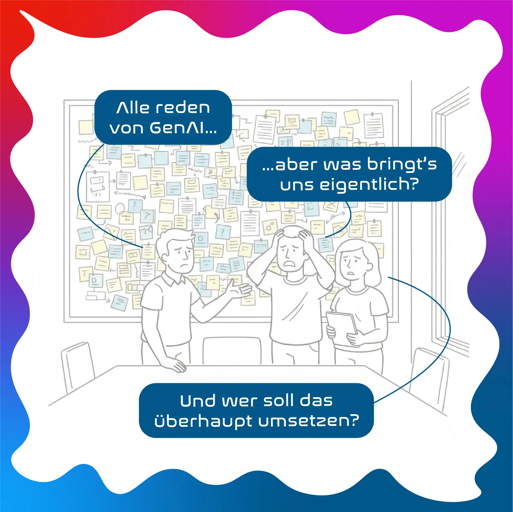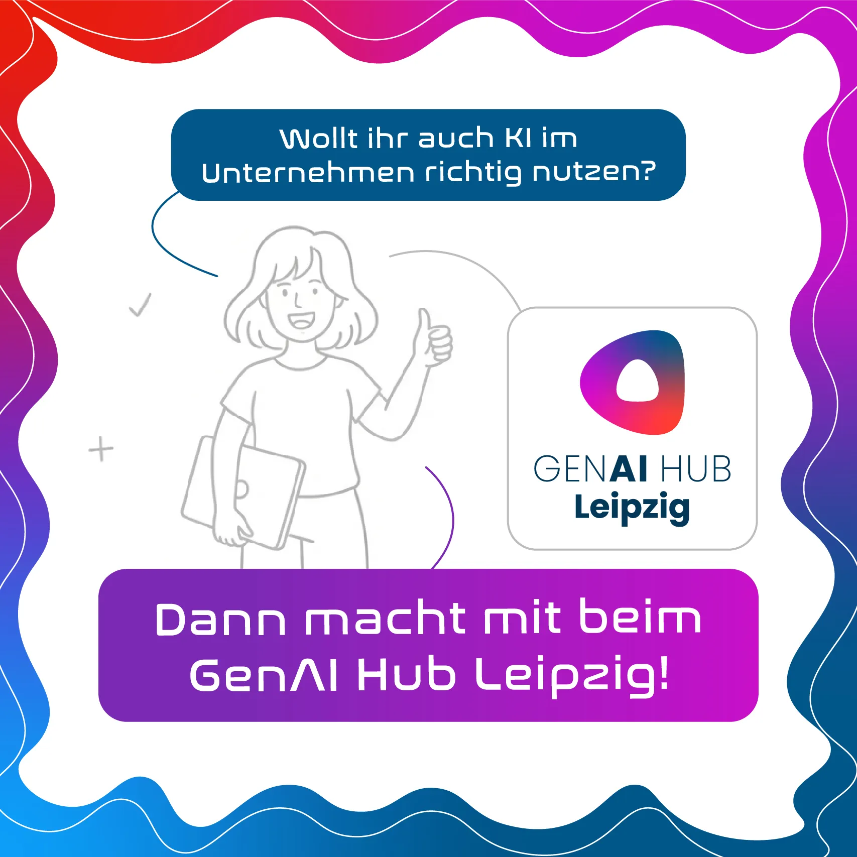 Wir unterstützen vor allem kleine und mittlere Unternehmen (KMU) dabei, die Potenziale von Generativer KI zu entdecken, Erfahrungen zu teilen und praxisnahe Anwendungen zu entwickeln. Auch größere Unternehmen sind herzlich eingeladen, ihr Wissen und ihre Perspektiven einzubringen.